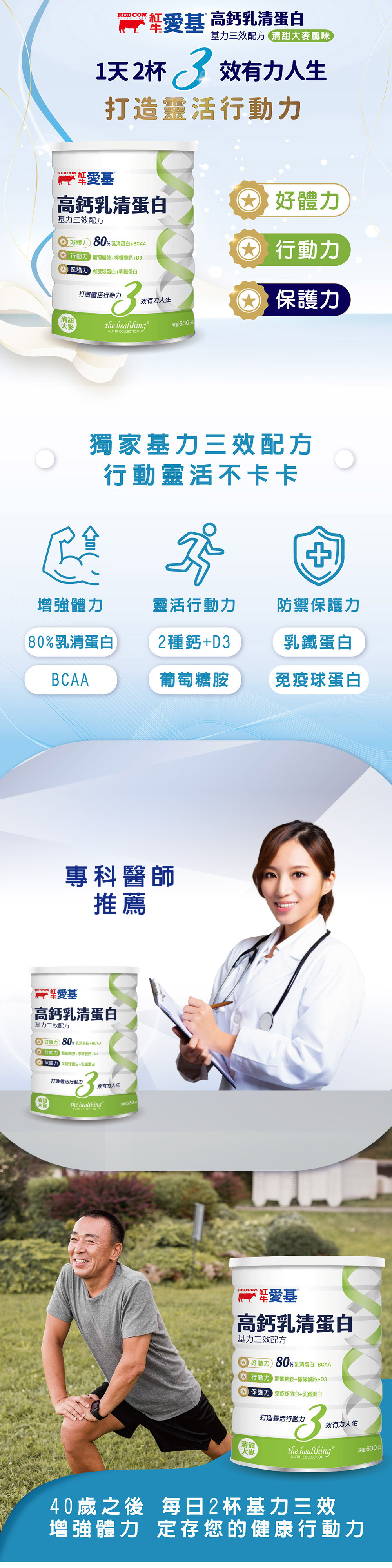 高鈣乳清蛋白 基力三效配方630g (清甜大麥風味)